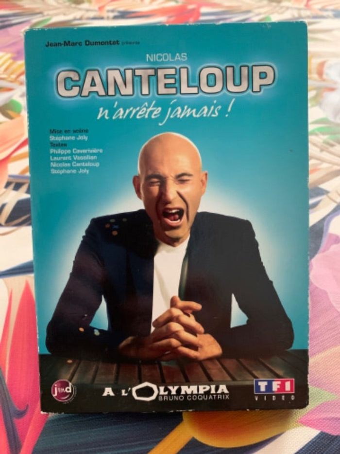 DVD 📀 de Nicolas Canteloup n’arrête jamais, seule la première chaquette est abîmée, la deuxième est en excellente état .