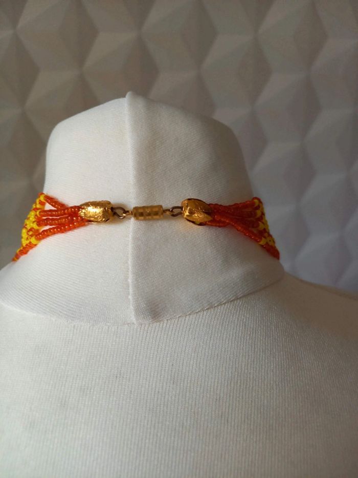 Collier fantaisie, style bohème Longueur 44 cm Fines perles jaune et orange Très bon état #linejacbijouxfantaisie