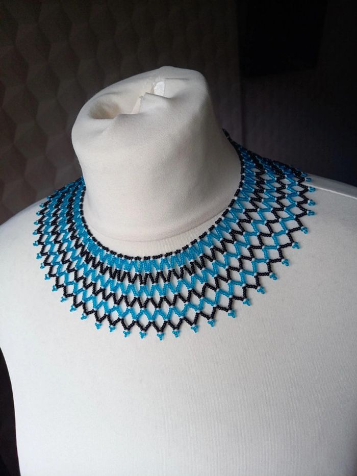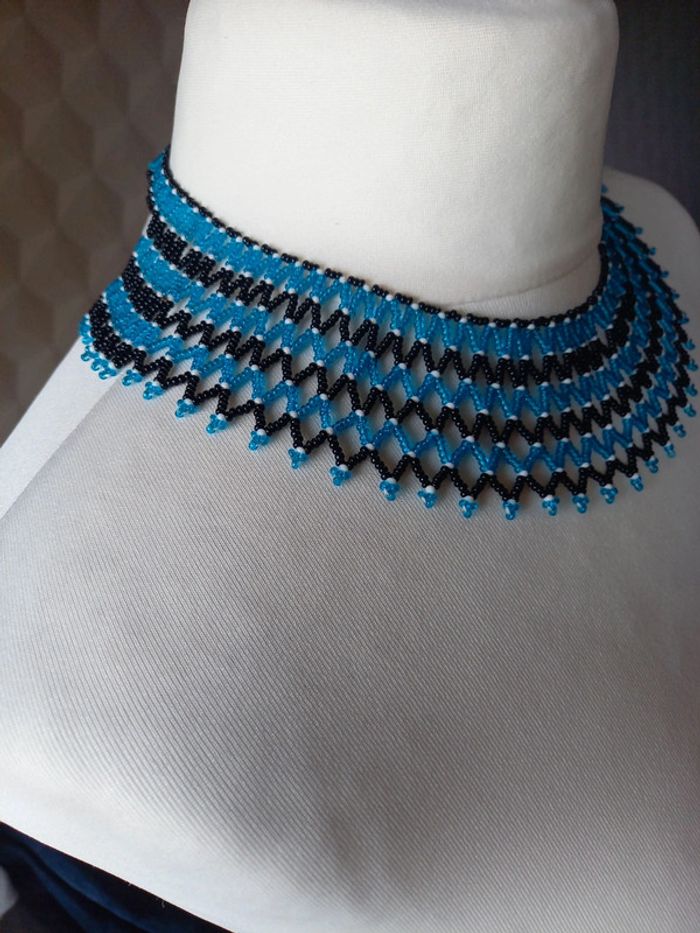 Collier ras de cou Style bohème Perles turquoise noires et blanches Aucun manque de perle. Excellent état #linejacbijouxfantaisie.