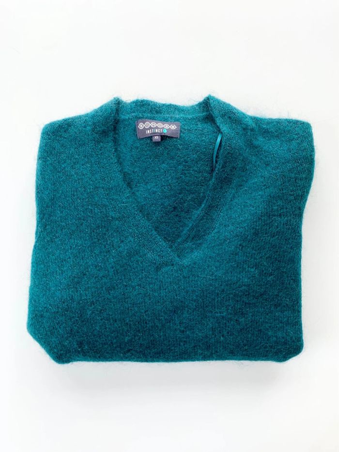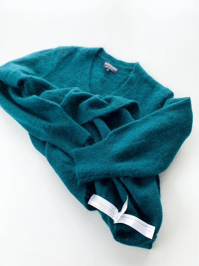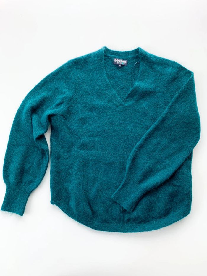 Très agréable et ample à porter Tissu en grosse maille. Style oversize. Col en V. Manches longues. Laine polyamide mohair acrylique Nos vêtements sont toujours garantis sans taches, ni trou 👌🏻 Maison non fumeur, sans poils d’animaux
