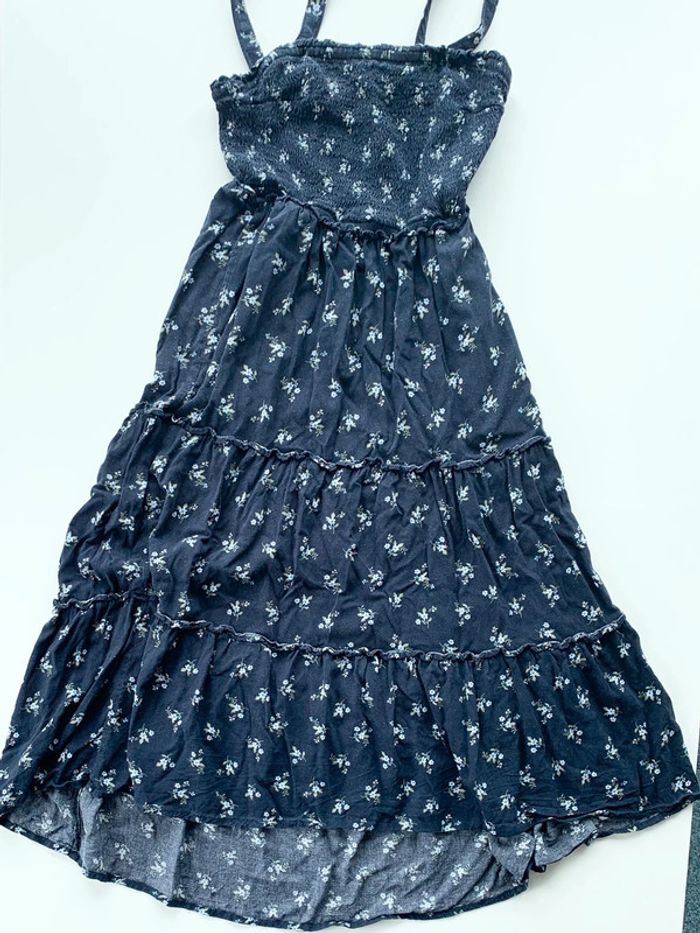 Marque : Hollister Taille : XS Jolie robe d’étĂ© bleu marine Ă  petites fleurs blanches, avec bretelles fines rĂ©glables. Coupe ample, parfaite pour les journĂ©es ensoleillĂ©es ☀ Se porte aussi bien avec des sandales que des baskets. Hyper confortable et flatteuse, je la vends simplement car j’ai trop de robes