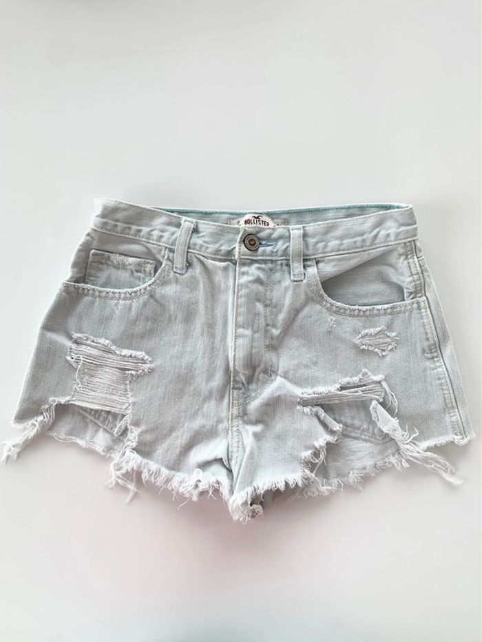Nos vêtements sont toujours garantis sans taches, ni trous 👌🏻 Maison non fumeur, sans poils d’animaux Short 5 poches en denim de coton de bonne tenue. Modèle avec braguette à glissière surmontée d'un bouton. Bleu clair Effets déchiré / craqué Taille 0 w24 soit XS