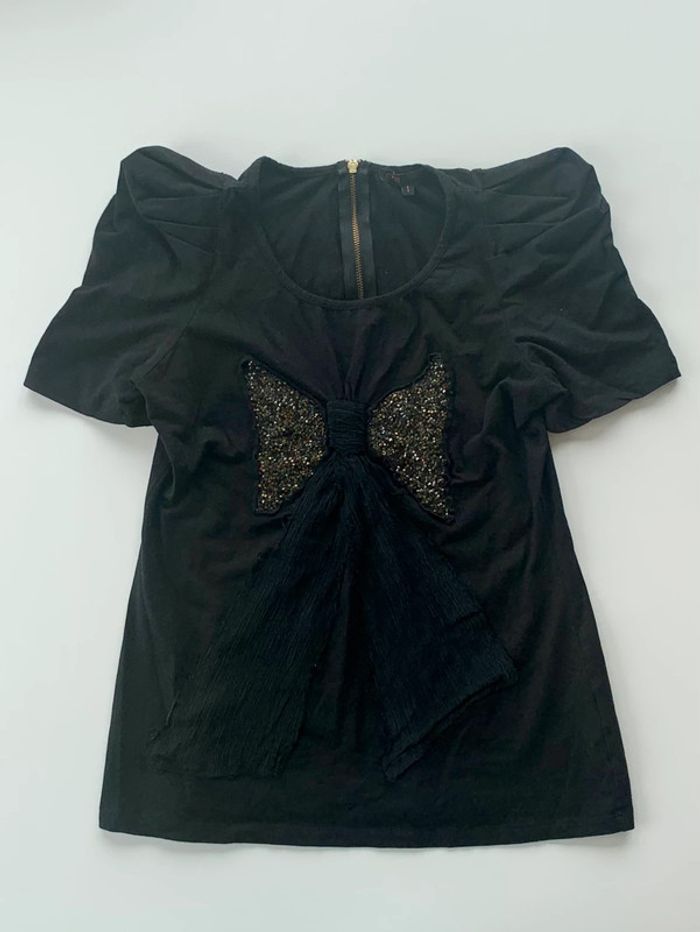 Top / haut / t-shirt Manches courtes style épaulettes Fermeture zip mi dos Motif : Nœud ailes de papillon 🦋 sur le devant Nos vêtements sont toujours garantis sans taches, ni trous 👌🏻 Maison non fumeur, sans poils d’animaux