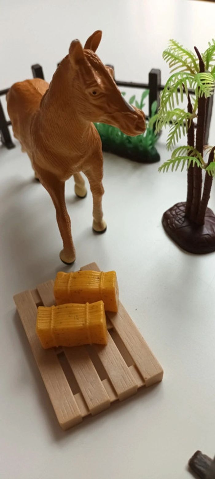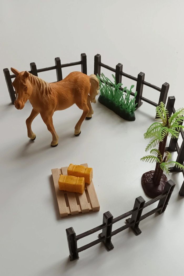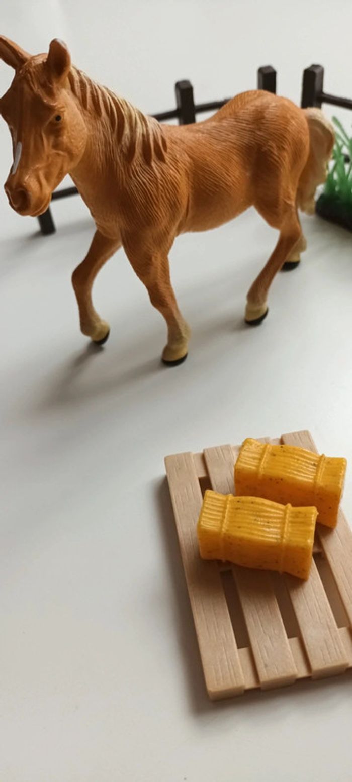 Lot un cheval marron clair et barrières 2 euros