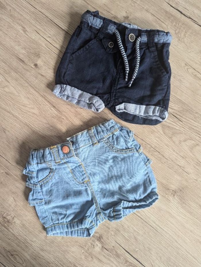 2 shorts, l'un en jean, l'autre plus léger comme tissu. Marques : Kiabi et Gémo Pas de défaut.