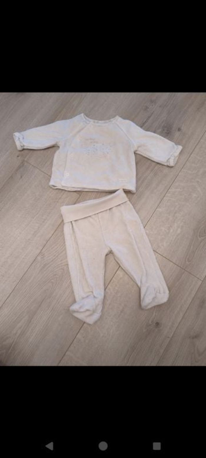 Pyjama en velours, 2 pièces, mon premier major. Pyjama porté mais en très bon état. C'est de la très bonne qualité. Le haut est doublé et très chaud Le bas est un pantalon avec les pieds inclus.