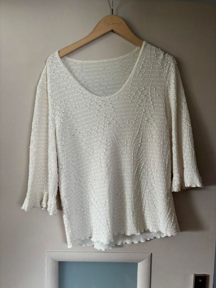 t shirt à manches longues ou petit pull vraiment très fin couleur blanc crème taille 3 Aisselle à aisselle : 45 cm Longueur : 60 cm
