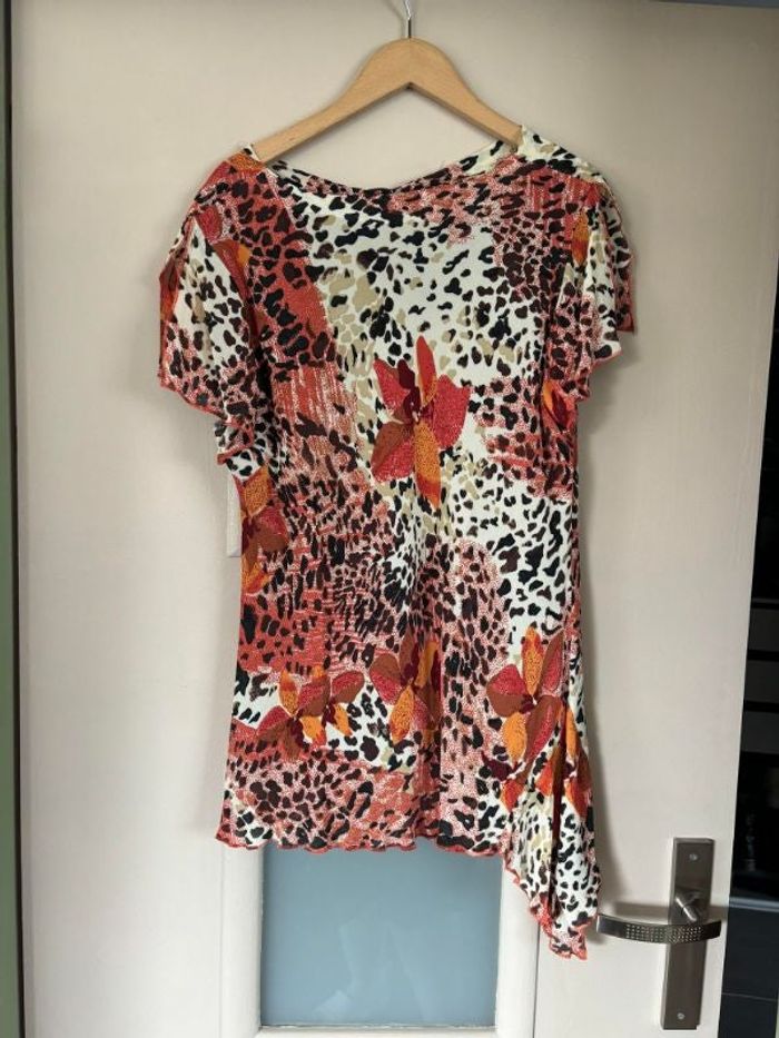 vends débardeur avec un motif " fleuri " avec doublure marron à l interieur petit noeud sur le côté taille 48 qui est indiqué mais taille petit donc correspond à un 44 je pense voire 42 (demandez les mesures pour être sur.e)