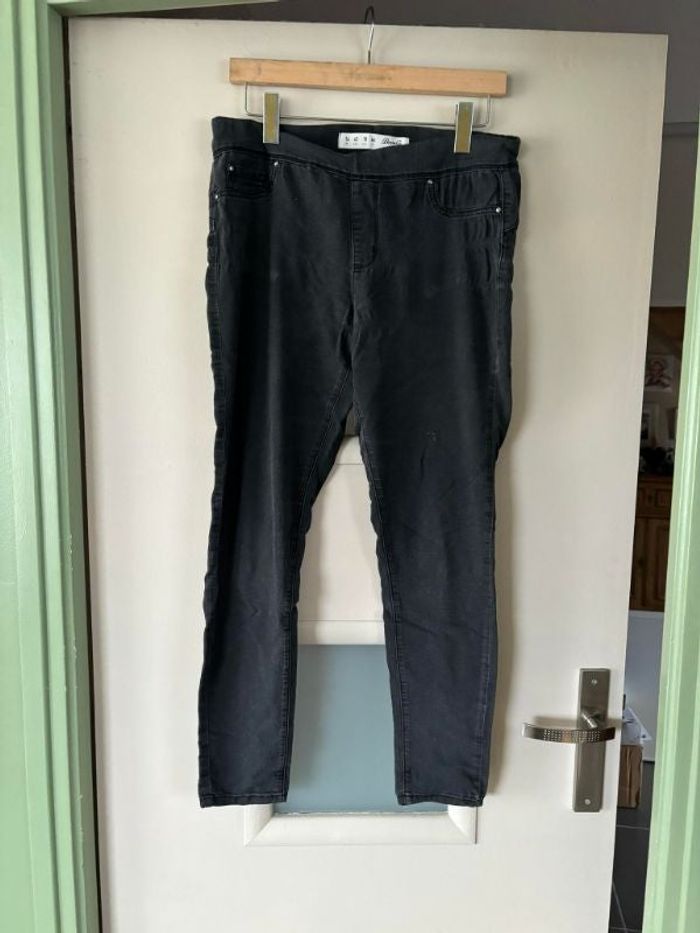 jeans jegging noir il y a des ondulations et la ceinture sur le côté gauche est retourné taille 42 denim & co