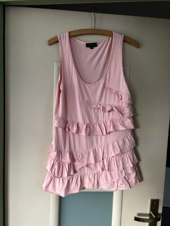 débardeur rose pale kiabi taille 42/44 avec des volants (cache le ventre)