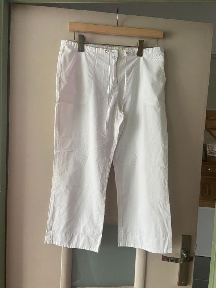 pantacourt blanc petit motif en bas du pantalon si vous voulez faire un bord taille 40 tex