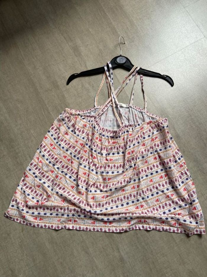 Débardeur coloré Marque Colline taille 42/44 Il taille grand, je pense que c’est un débardeur de grossesse Possible de mettre le croisement des bretelles sur le devant ou dans le dos