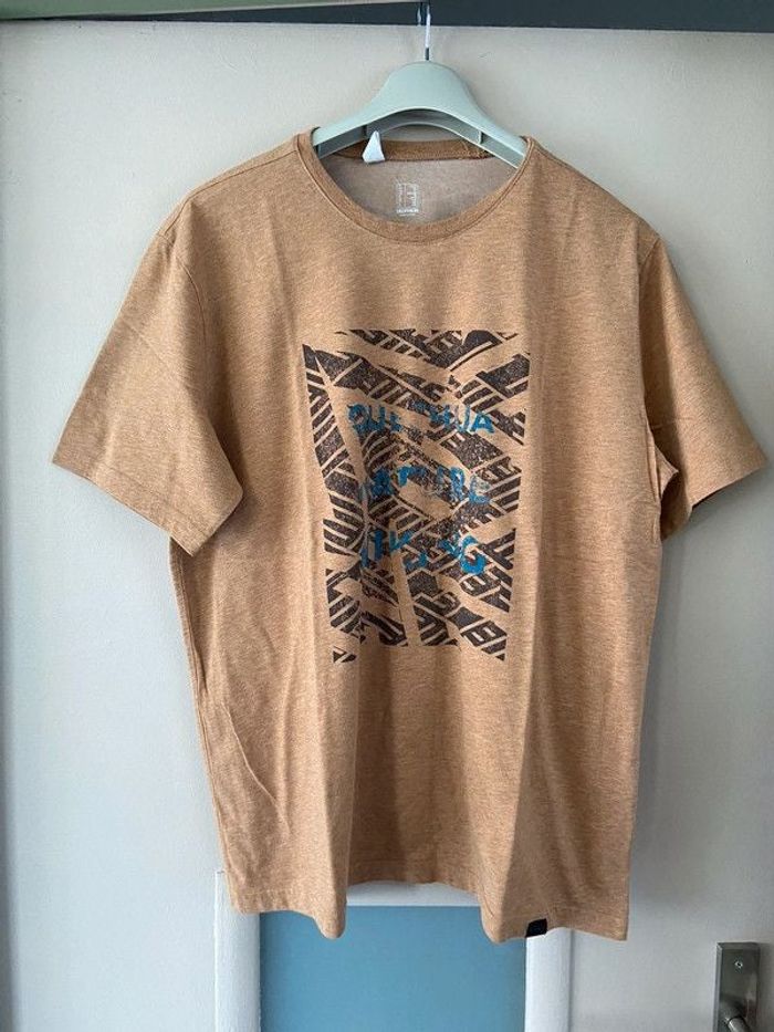 T shirt marron avec un motif « pneu » Marque Quechua de Décathlon Taille 2XL Il peut être mixte autant homme que femme