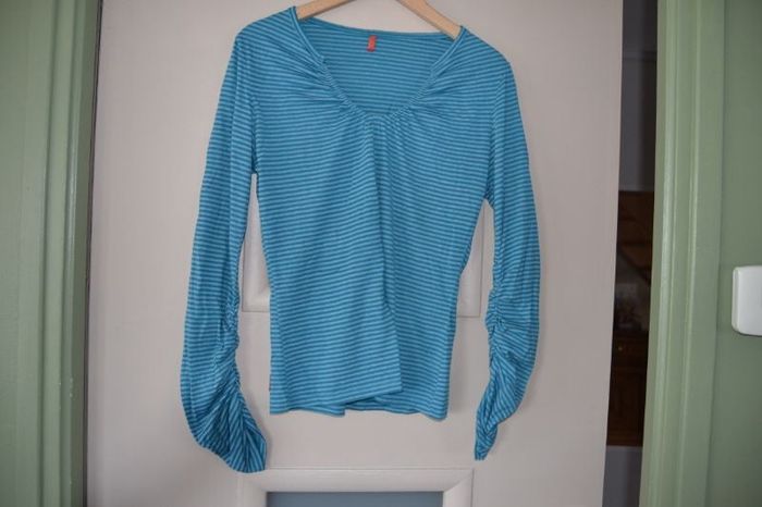 t shirt bleu a rayures avec manches recintré taille 2 marque miss captain