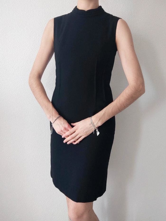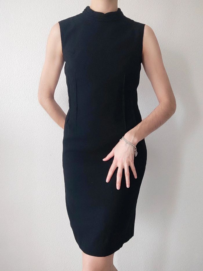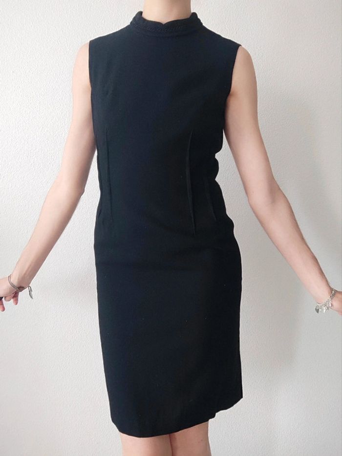 Robe droite chic surpiqué soie noir 1970 🇨🇵 Fabrication Artisanale - 38/M - photo numéro 9