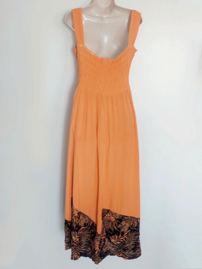Robe médiévale à lacets orange feuille noir vintage / Coline - 40/L à 42/XL