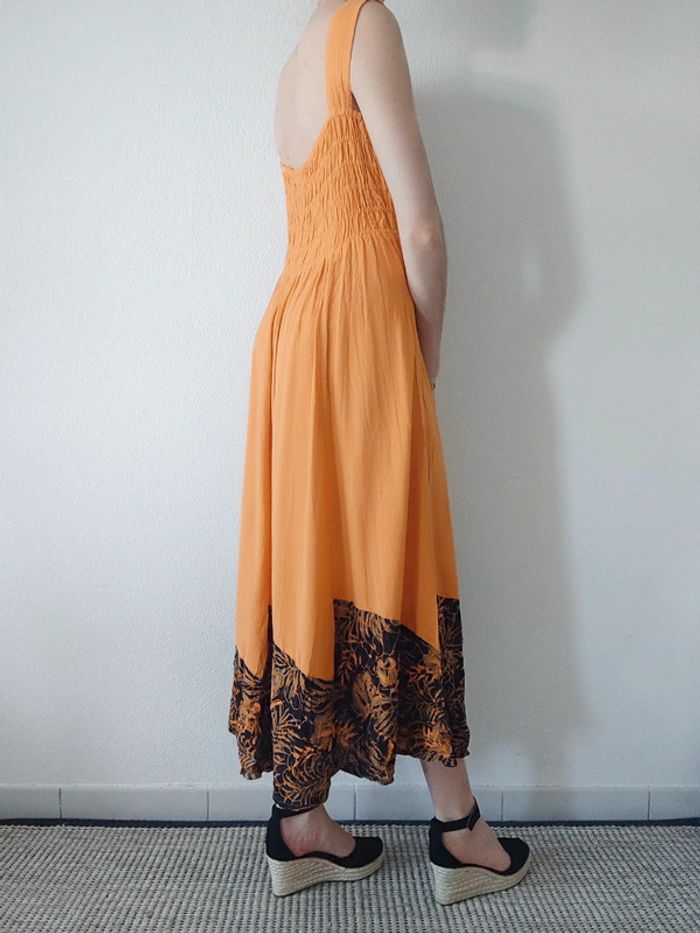 Robe médiévale à lacets orange feuille noir vintage / Coline - 40/L à 42/XL - photo numéro 2