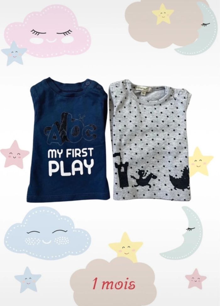 👶 SWEAT-SHIRT 👶 Lot de 2 sweat-shirt en coton Bébé garçon Taille : 1 mois (54cm) Marques : Obaïbi, Prémaman Entre bon état et très bon état #aicul05garcon1mois