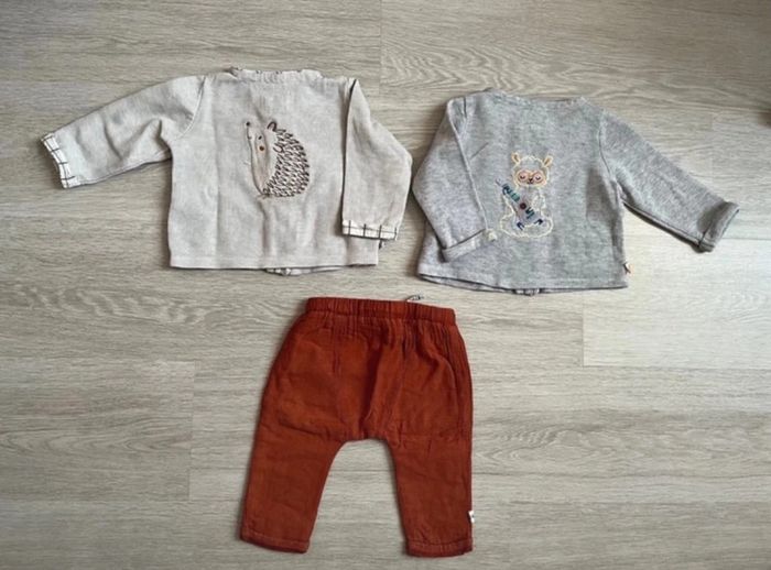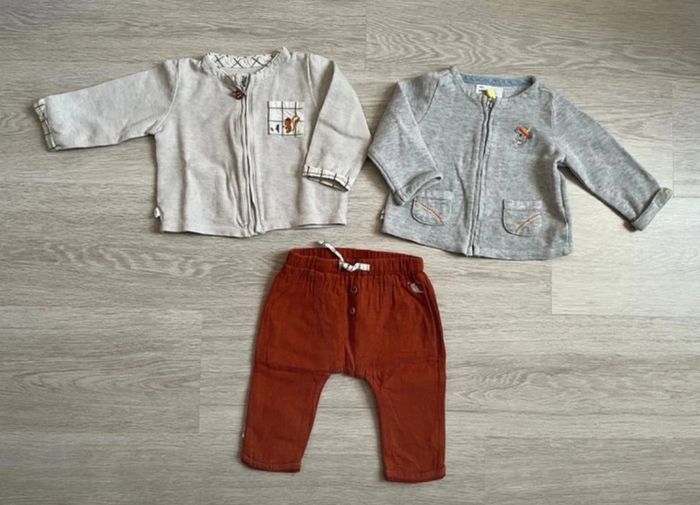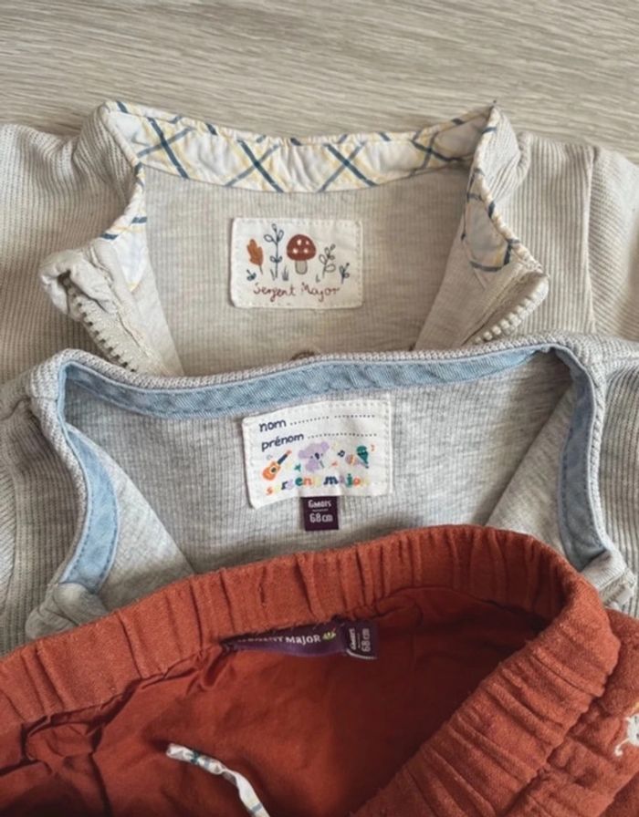 ENSEMBLE 👶 Ensemble confortable : deux sweat-shirt zippés et un pantalon doublé Jolis motifs animaux Taille 6-9 mois 68 cm Marque Sergent Major Tout est en parfait état apart une petite tache peut visible sur le sweat-shirt (dernière photo) #aicul05garcon6mois #sergentmajor #bebe6mois #ensemble6mois #petitprix #tresbonetat