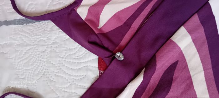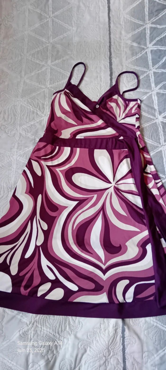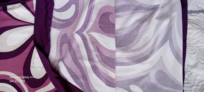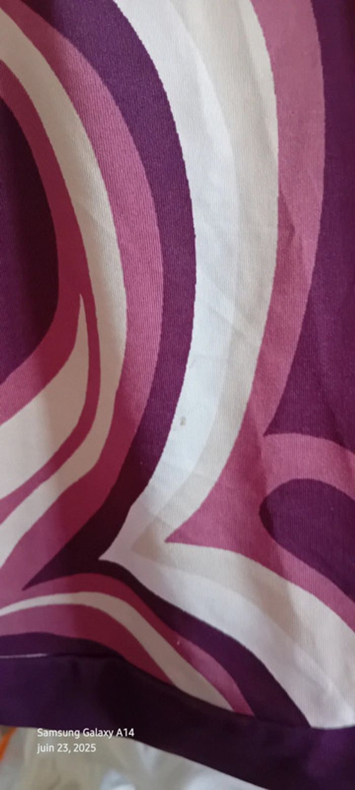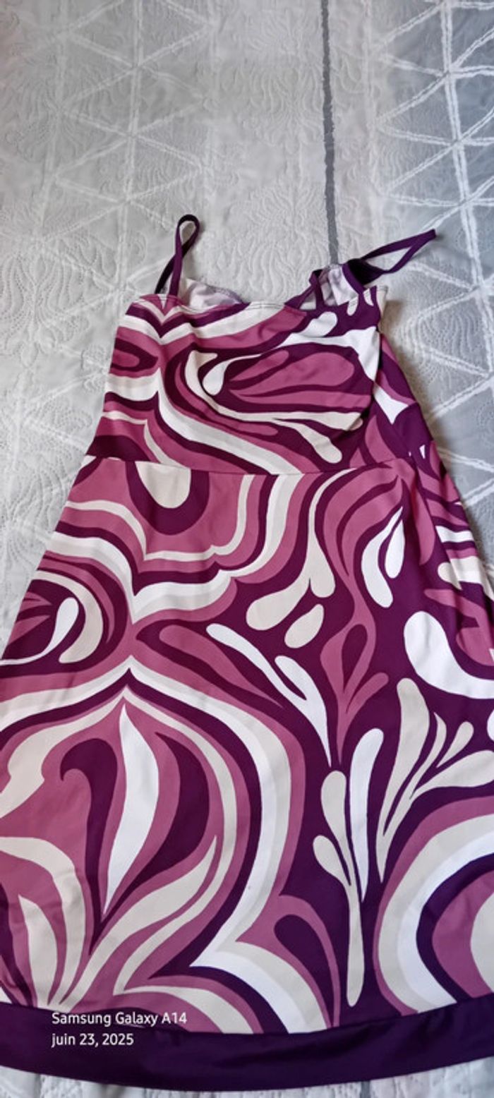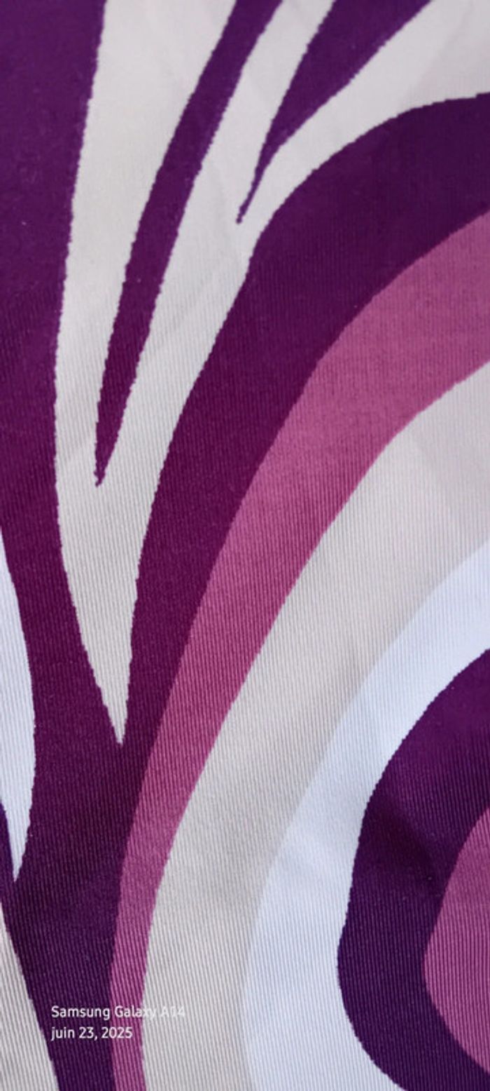 Robe mi longue à fines bretelles en viscose et polyester matière fluide et satinée décolleté cache cœur avec strass coupe trapèze taille haute avec lien motif floral psychédélique style vintage seventies années 70 tons violet prune rose et blanc longueur 97 cm largeur aisselles à aisselles 40 cm tour de taille 70 cm marquée taille L taille petit correspond à un 38/40 en très bon état ⚠️ juste un petit point en bas pas visible àu porté (voir dernières photos) #midole #midolefemme #midolefemme38 #femme38 #robefemme40 #robevintage #robeseventies #robeannees70 #bershka #femme3840 #robecachecoeur #robefinesbretelles38 #robeestivale #motifpsychedelique #motiffloral