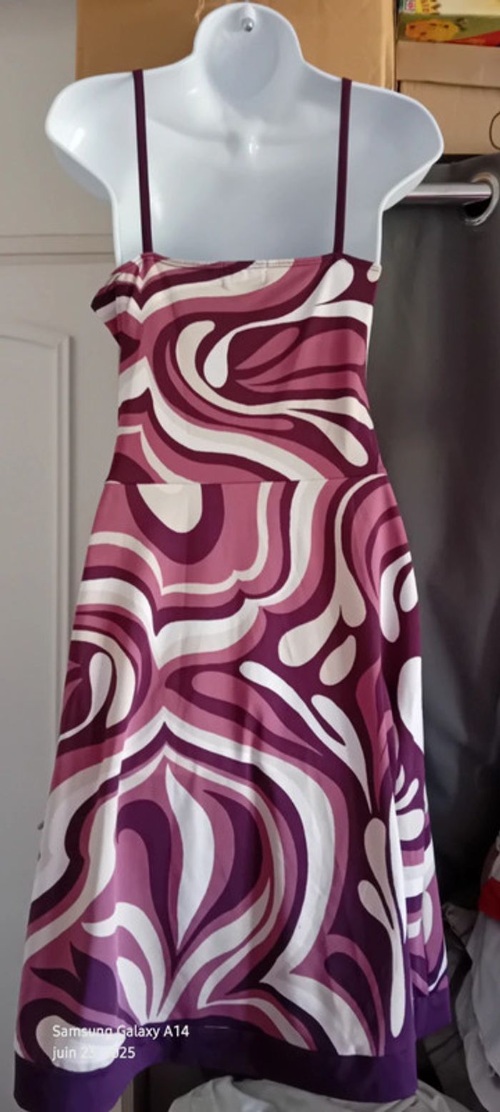 Robe estivale esprit 70 vintage motif floral psychédélique cache cœur femme 38/40 bershka - photo numéro 10