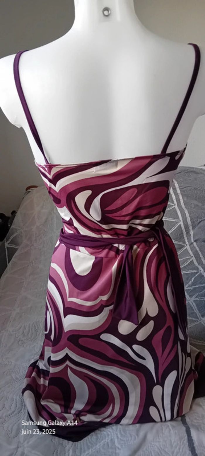 Robe estivale esprit 70 vintage motif floral psychédélique cache cœur femme 38/40 bershka - photo numéro 14