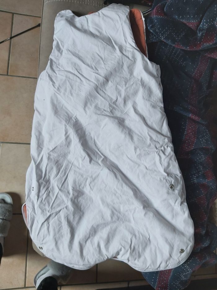 Gigoteuse utilisée 1 semaine car mon fils ne l'a supporte pas... Longueur 70 cm Aucune tâche ni abîmé vaut 23,99€ neuf. Matière principale : 100% percale de coton issu de l'agriculture biologique  •  Doublure : 100% jersey de coton issu de l'agriculture biologique  •  Garnissage : 100% polyester (120 g/m2)