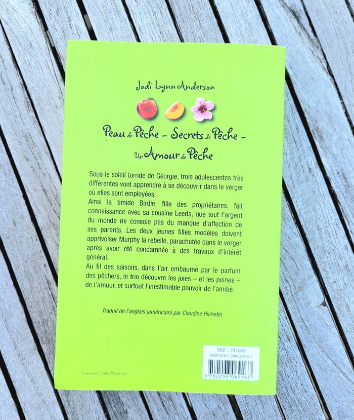Auteur : Jodi Lynn Anderson G.Format 13 x 21 cm - 986 pages 3 Tomes en 1 seul livre Sous le solelil toride de Géorgie, trois adolescentes tres différentes vont apprendre à se découvrir dans le verger où elles sont employées. Au fil des saisons, dans l'air embaumé par le parfum des pêchers, le trio découvre les joies - et les peines - de l'amour, et surtout l'inestimable pouvoir de l'amitié.
