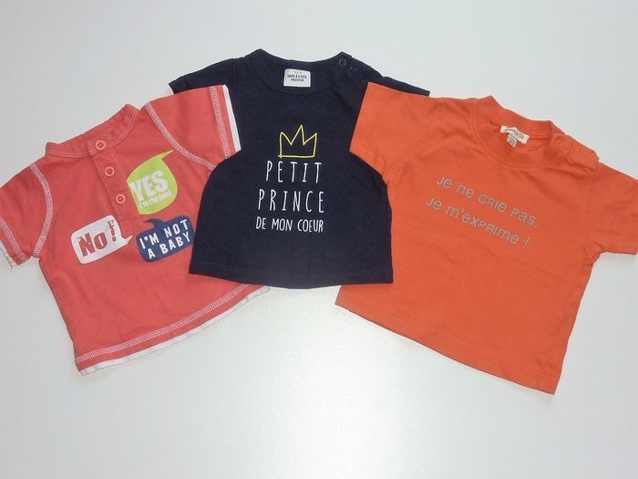Etat excellent pour ces tee shirts, un corail et un marine tape à l'oeil, un orange grain de blé.