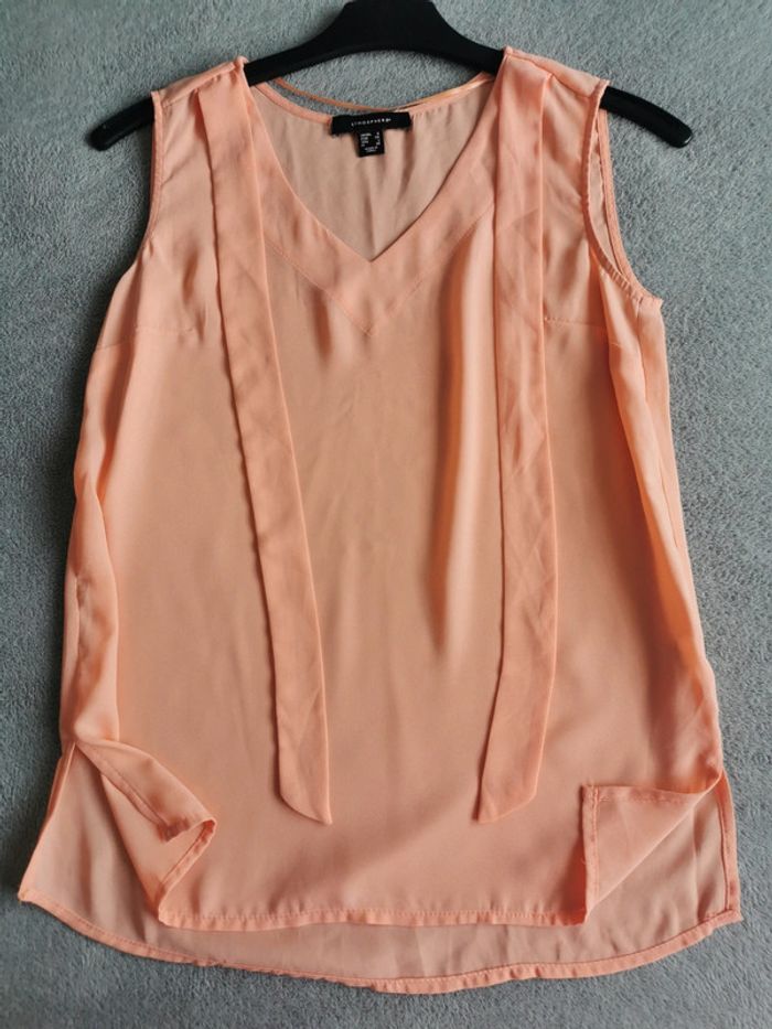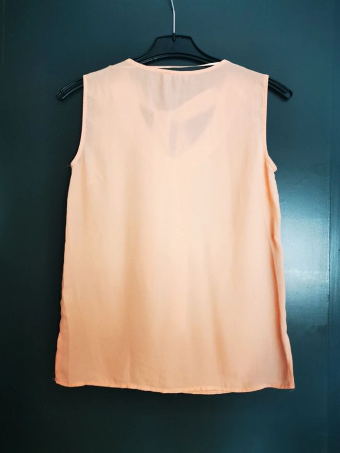 Blouse sans manche couleur saumon taille 34, ample, tissus fin et léger. Très bon état.