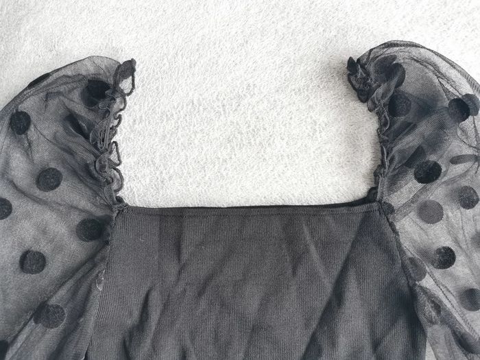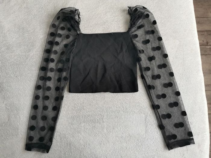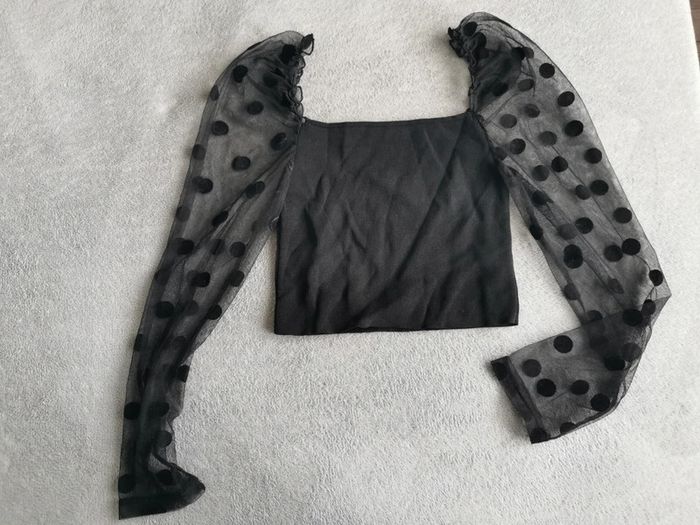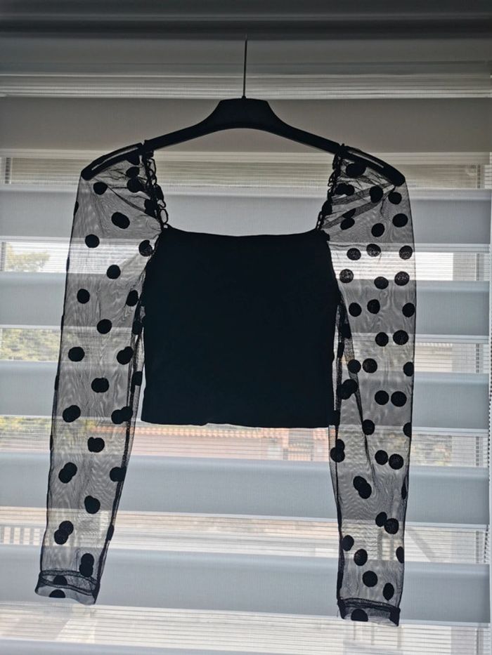 Top court Zara, manches transparente à pois, très bon état.