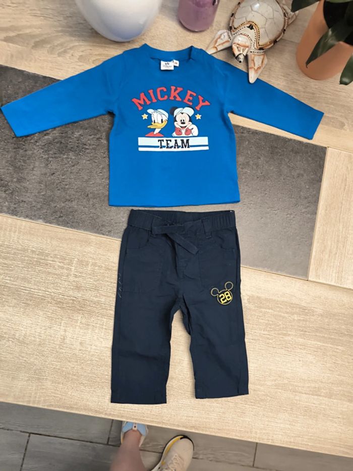 Très joli ensemble léger 2 pièces garçon taille 6 mois de la marque Disney Mickey en parfait état composé