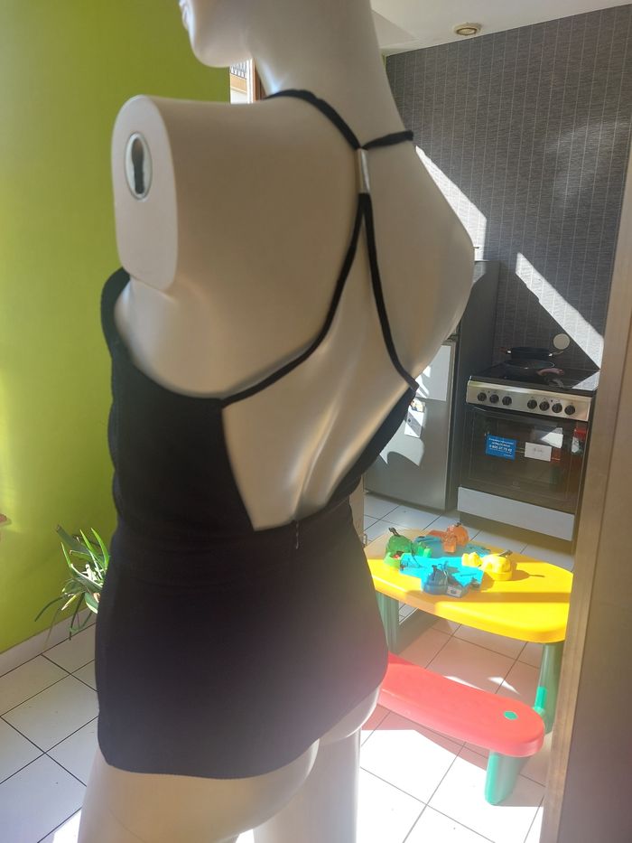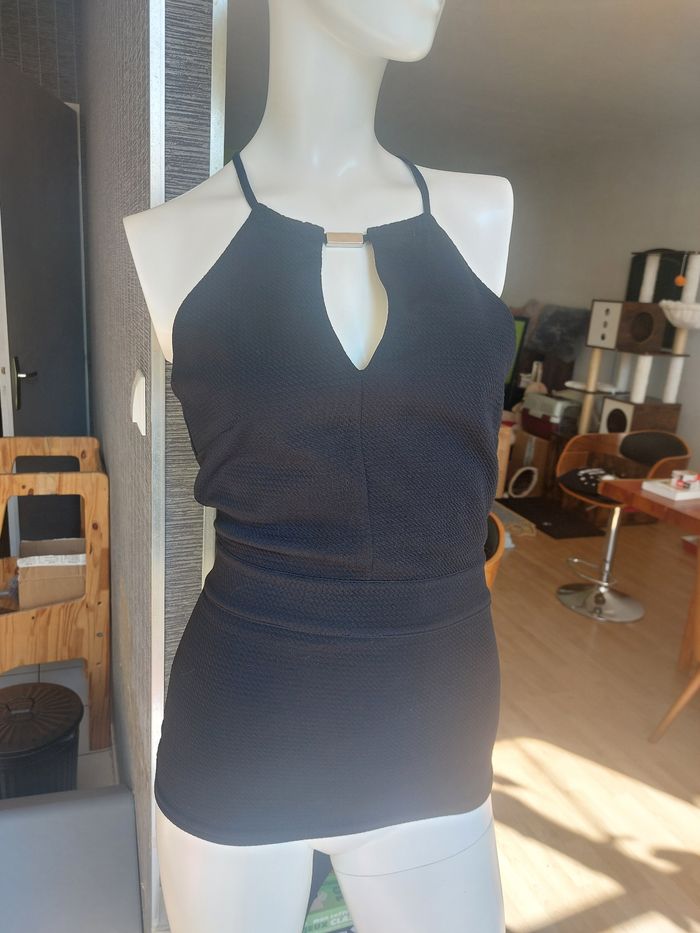 Top de chez Morgan noir, vraiment très beau rendu, ouvert dans le dos, taille 34 N'hésitez pas à me contacter si vous avez des questions 😀