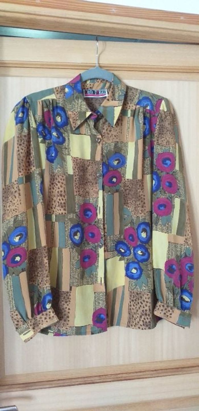 Porté peu de fois. Chemisier à motif. Absence d'étiquette indiquant la taille et la composition. Taille 38/40.