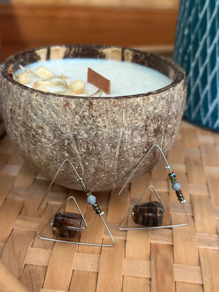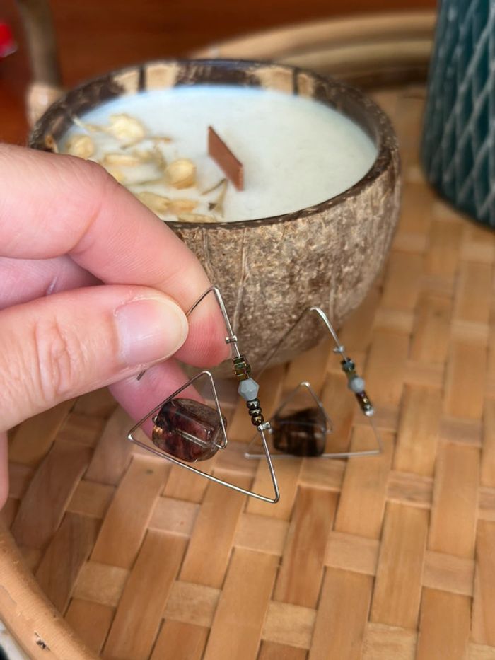 ✿ Ces boucles d’oreilles au design original sont fabriquées à partir d’un alliage écologique et de pierres naturelles. Solides, durables, simples et élégantes, elles se démarquent totalement des modèles classiques. ✿ Taille : env. 3,8 cm x 3,3 cm (1,5 x 1,3 pouces) ✿ Très légères et agréables à porter, elles sont parfaites pour un usage quotidien, tout en ajoutant une touche chic et tendance à votre tenue. Très bon état / création artisanale. 💛