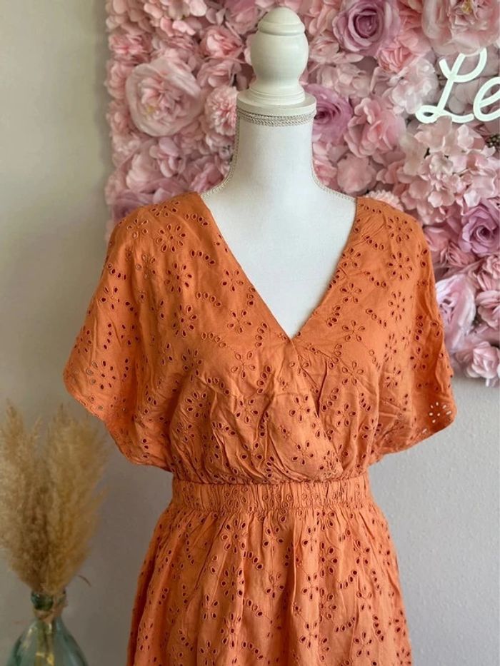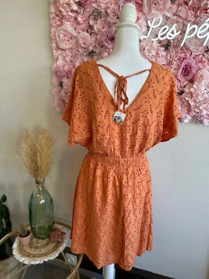 Robe orange corail en broderie anglaise taille 36 - Promod - photo numéro 1