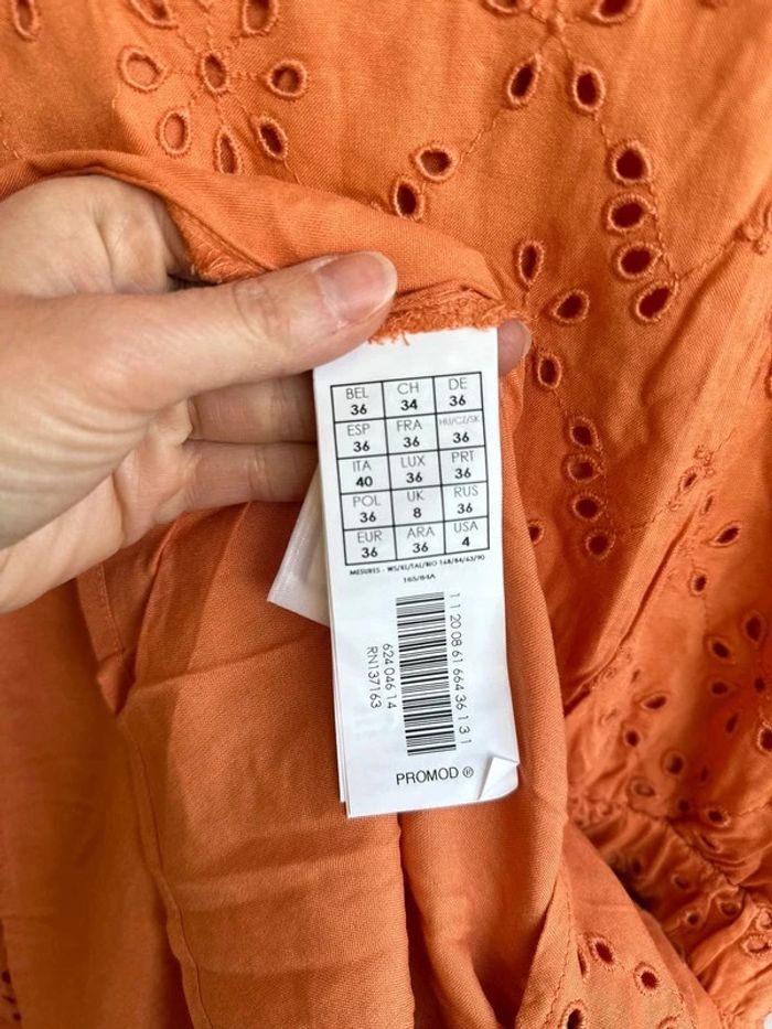 Robe orange corail en broderie anglaise taille 36 - Promod - photo numéro 7