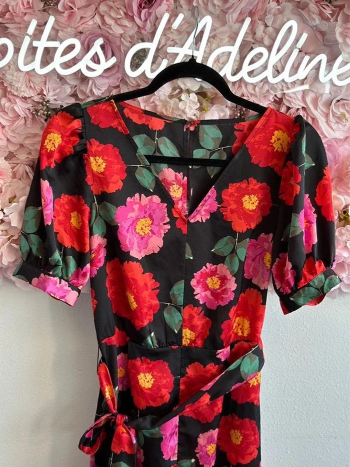 Combinaison fluide noire à motifs fleuris, taille S/M - Made in Italy - photo numéro 2