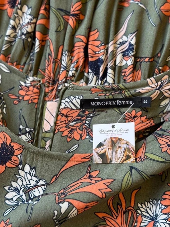 Robe fluide kaki motifs fleuris taille 44 - Monoprix - photo numéro 3