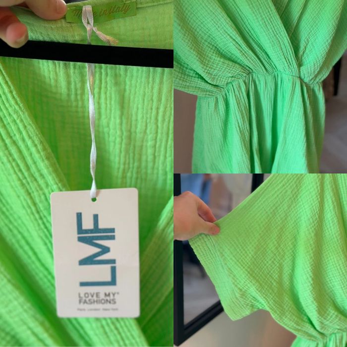 Combi short oversize vert en gaz de coton taille U - photo numéro 3