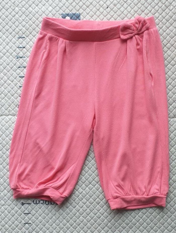 Pantacourt rose avec un nœud décoratif devant. Taille élastique. #Steph85690_4ans
