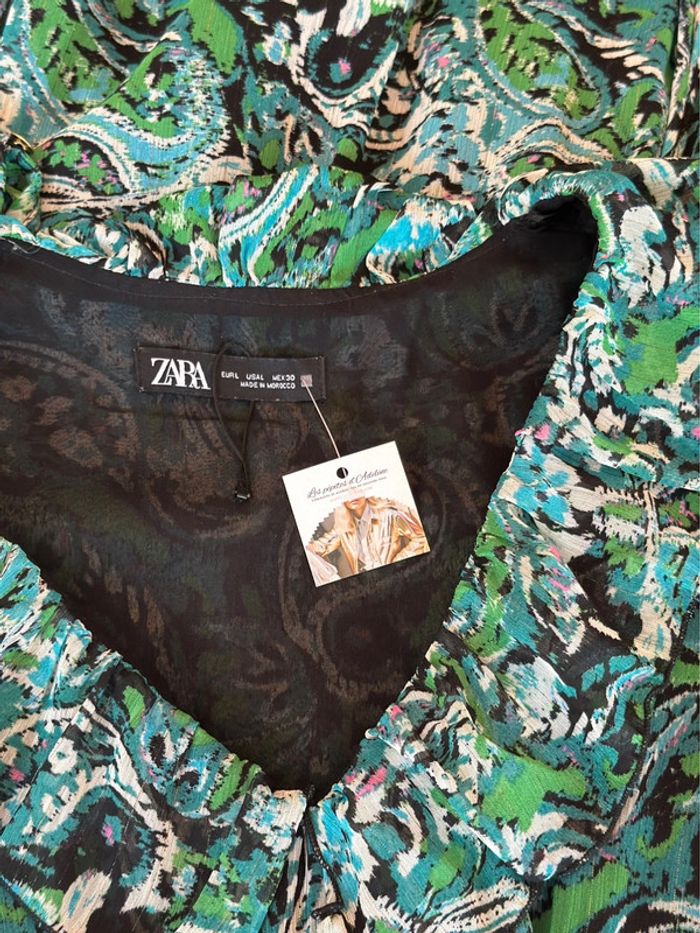 Robe midi imprimé cachemire vert – Zara – Taille L - photo numéro 1