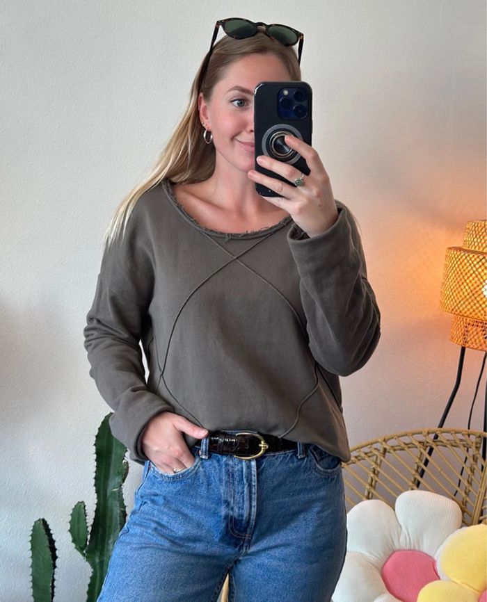 En parfait état, joli sweat couleur kaki avec de petits détails. Col rond. 100 % coton, confortable à porter. La taille L/40 convient bien. Mesure d’aisselle à aisselle : 50 cm. 📏 Je mesure 1m60, 47-48kg, t34,36, p36 Plus d’infos dans ma description de profil. 🔥 Code promo pour les abonnées Insta @les_pepitesdadeline ❌ Pas de remises sans code promo ⚜️ Forme un lot et bénéficie d’une remise • Trois articles -5% • Cinq articles -10% Cumulables avec le code promo 🔥 💌 N’hésite pas à t’abonner si tu souhaites être la première avertie des prochaines pépites & suis la boutique sur instagram pour ne rien louper.