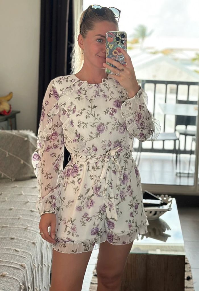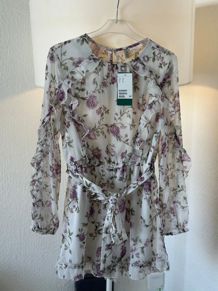 Très jolie combishort à l’imprimé fleuri lilas sur fond blanc, esprit bohème romantique. Tissu léger et fluide, avec détails volantés au niveau des manches et du short. • Marque : H&M • Taille indiquée : 38, convient parfaitement à un 36/38 • Neuve, avec étiquette • Lien à nouer à la taille pour un ajustement parfait • Fermeture boutonnée à l’arrière Une pièce fraîche et féminine, idéale pour le printemps ou un look de vacances tout en douceur. 📏 Je mesure 1m60, 47-48kg, t34,36, p36 Plus d’infos dans ma description de profil. 🔥 Code promo pour les abonnées Insta @les_pepitesdadeline ❌ Pas de remises sans code promo ⚜️ Forme un lot et bénéficie d’une remise • Trois articles -5% • Cinq articles -10% Cumulables avec le code promo 🔥 💌 N’hésite pas à t’abonner si tu souhaites être la première avertie des prochaines pépites & suis la boutique sur instagram pour ne rien louper.