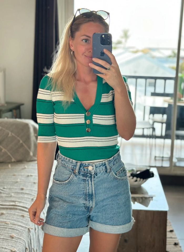 Top à rayures vert, blanc et noir - Taille XS - Morgan - photo numéro 5