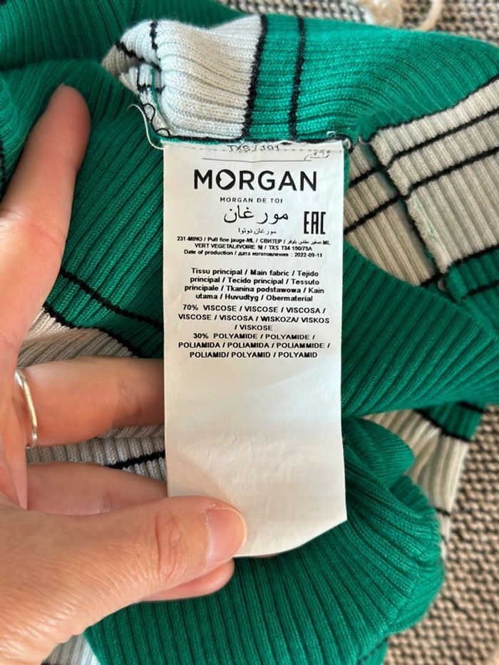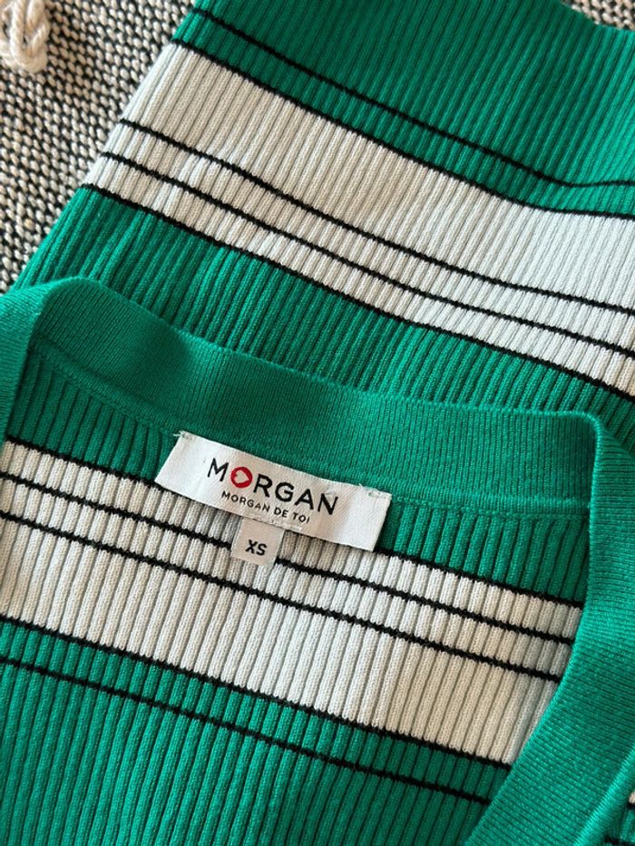 Top à rayures vert, blanc et noir - Taille XS - Morgan - photo numéro 8