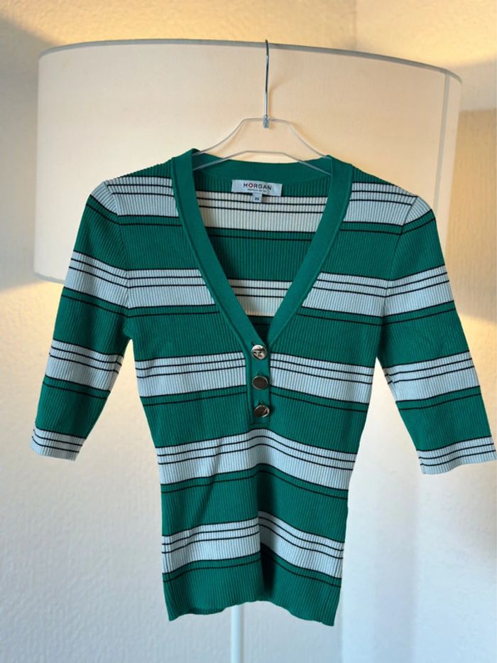 Top à rayures vert, blanc et noir - Taille XS - Morgan - photo numéro 3