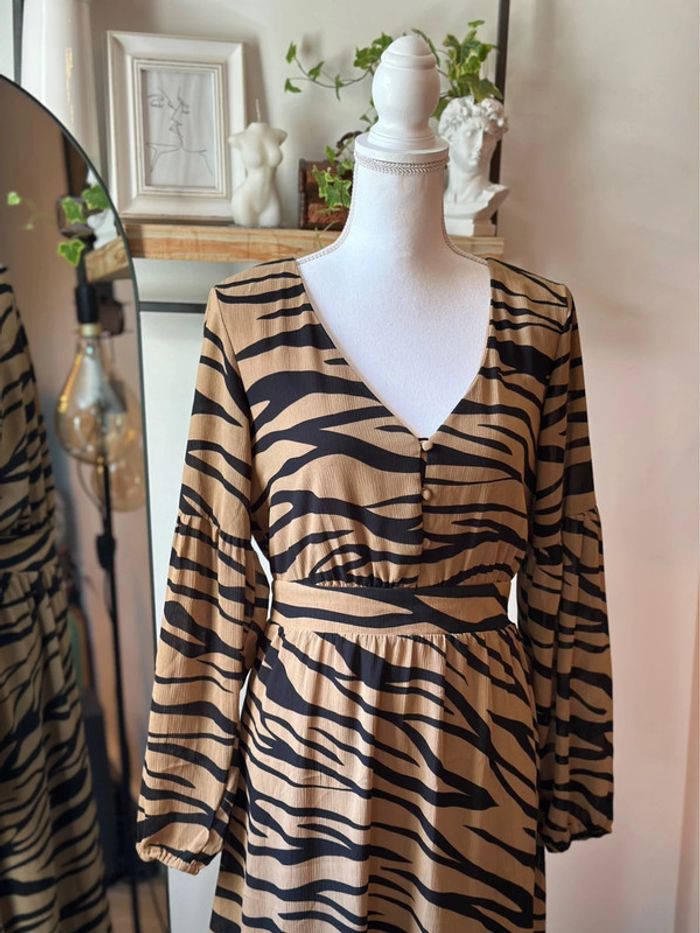 Robe longue imprimé zèbre marron et noir - Vila taille 38 - photo numéro 10