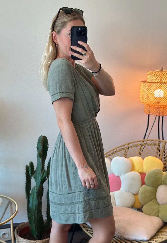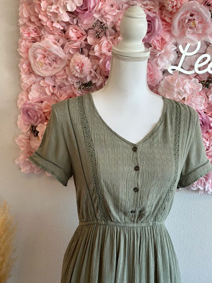 Robe midi kaki avec détails en dentelle ajourée, taille S - IKKS - photo numéro 2