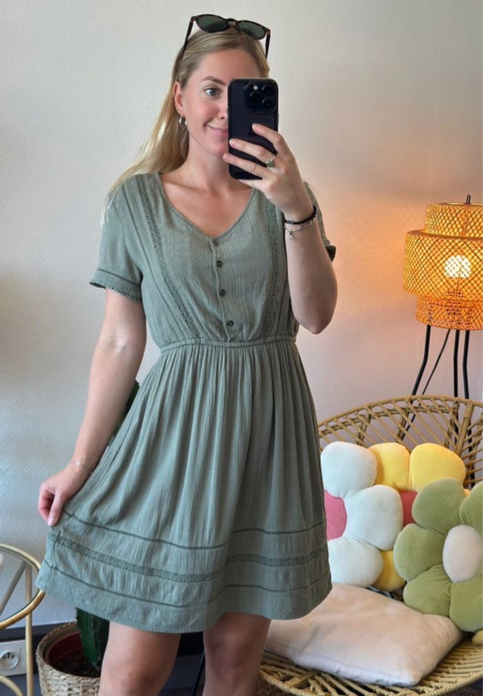 Robe midi kaki avec détails en dentelle ajourée, taille S - IKKS - photo numéro 1